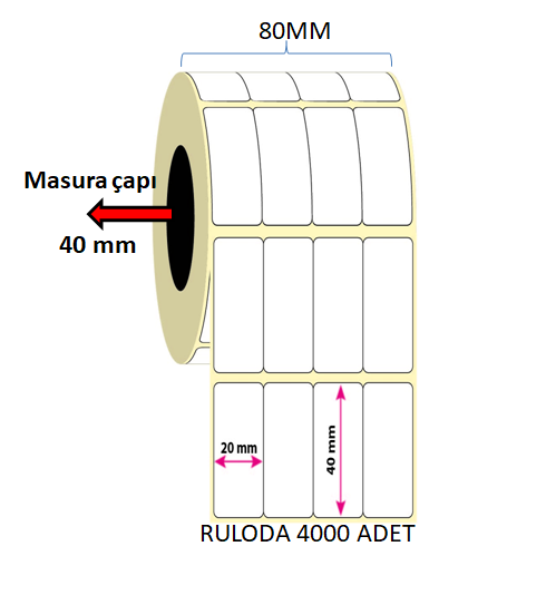 - 40 mm kukaya sarılmış 4000 adetlik 40X20 MM YANYANA 4LÜ mm termal etiket